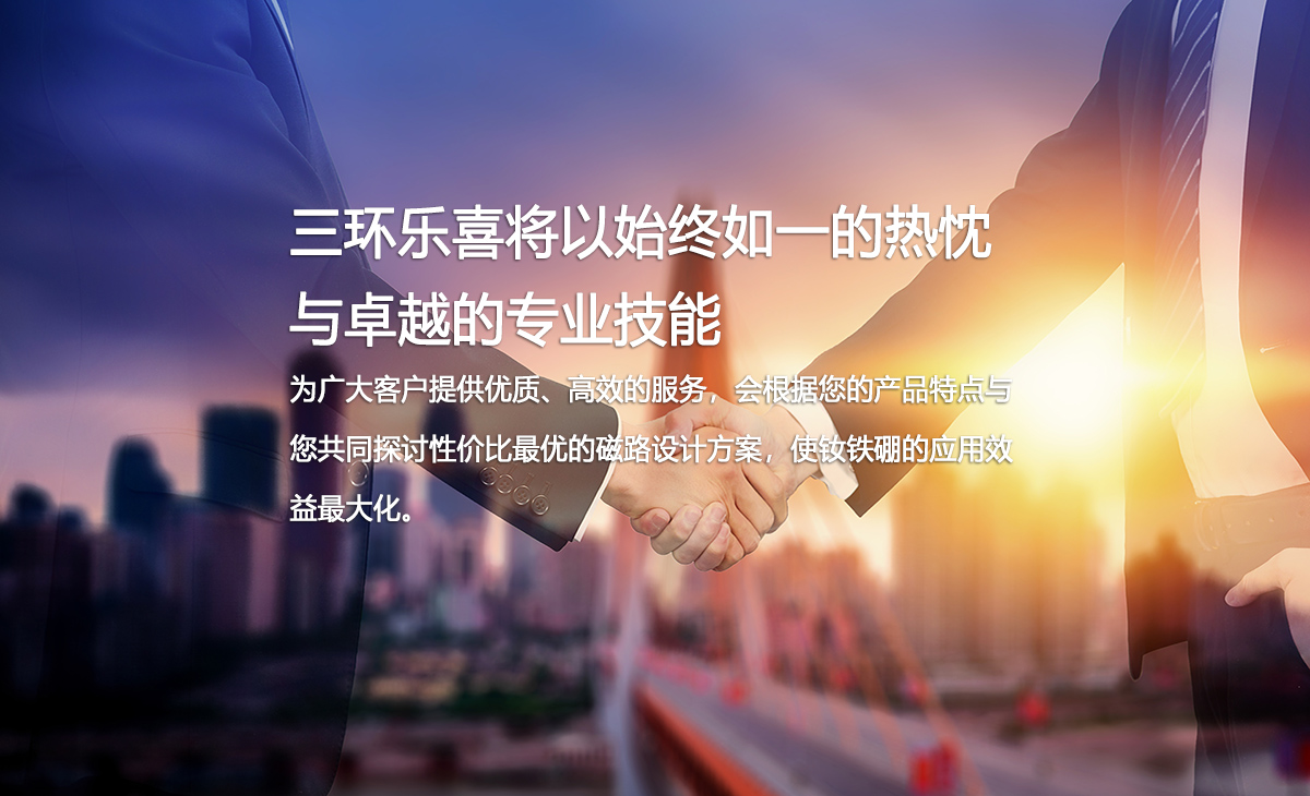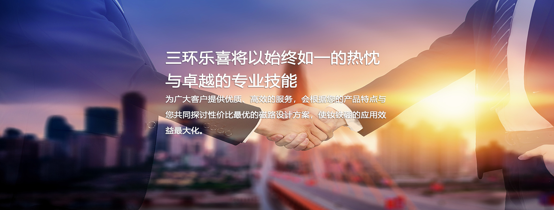 三環(huán)樂喜新材料有限公司,成立于1990年,控股股東中科三環(huán)(股票代碼:000970)為中國(guó)稀土永磁材料產(chǎn)業(yè)的代表企業(yè)、全球特大的釹鐵硼永磁體制造商之一。自成立以來(lái),公司一直致力于研發(fā)、生產(chǎn)、銷售中、高品質(zhì)燒結(jié)釹鐵硼,年生產(chǎn)能力超過(guò)6000噸,是中科三環(huán)的重要生產(chǎn)基地。